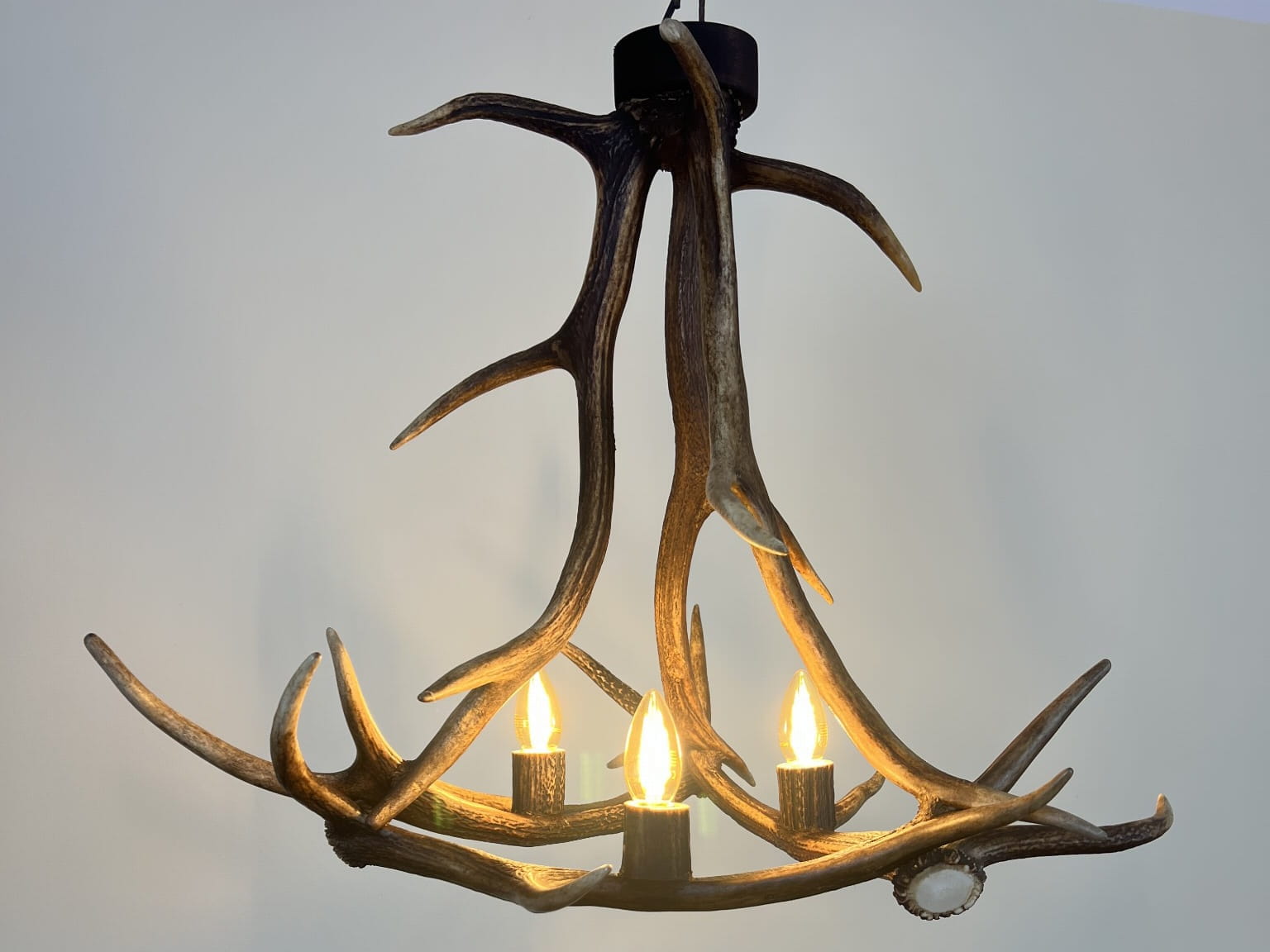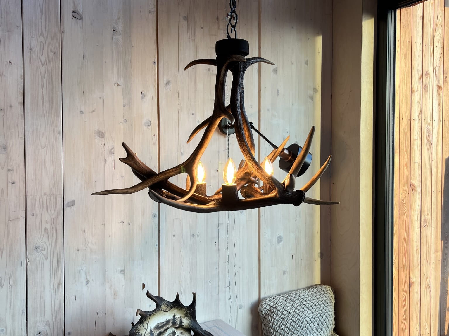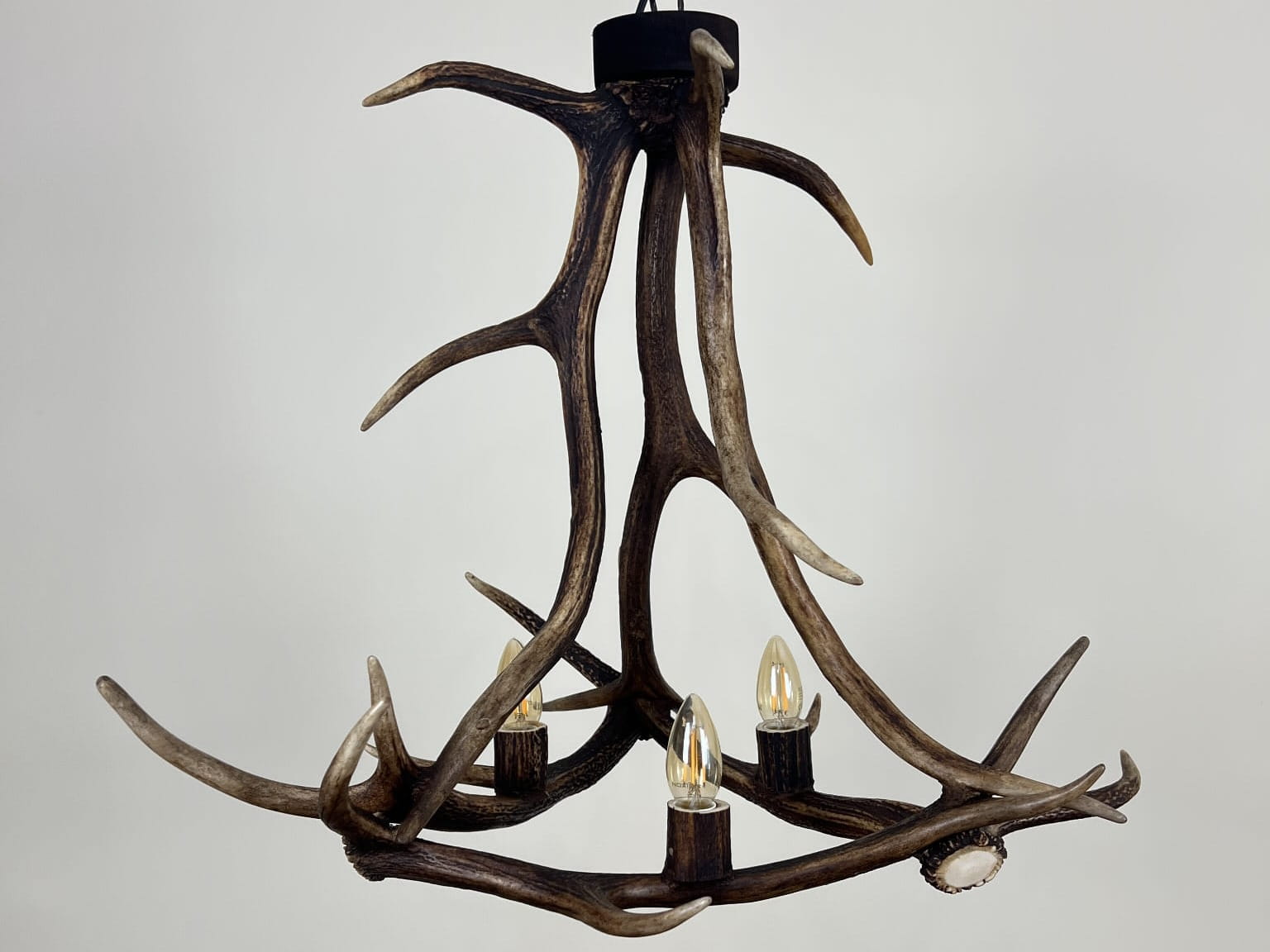 Żyrandol z poroża na 3 żarówki E14 – oprawki w porożu
