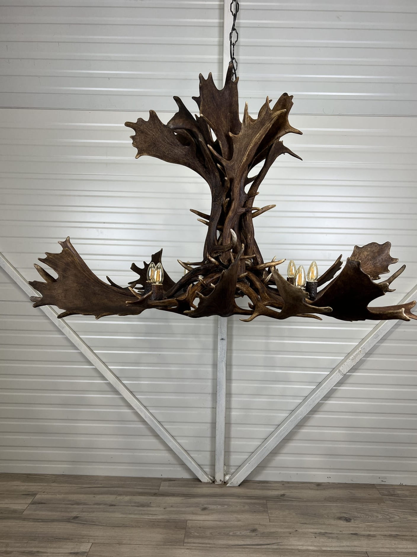 Żyrandol z poroża łopat daniela na 8 żarówek | Rustykalny żyrandol z prawdziwego poroża daniela – duży żyrandol myśliwski