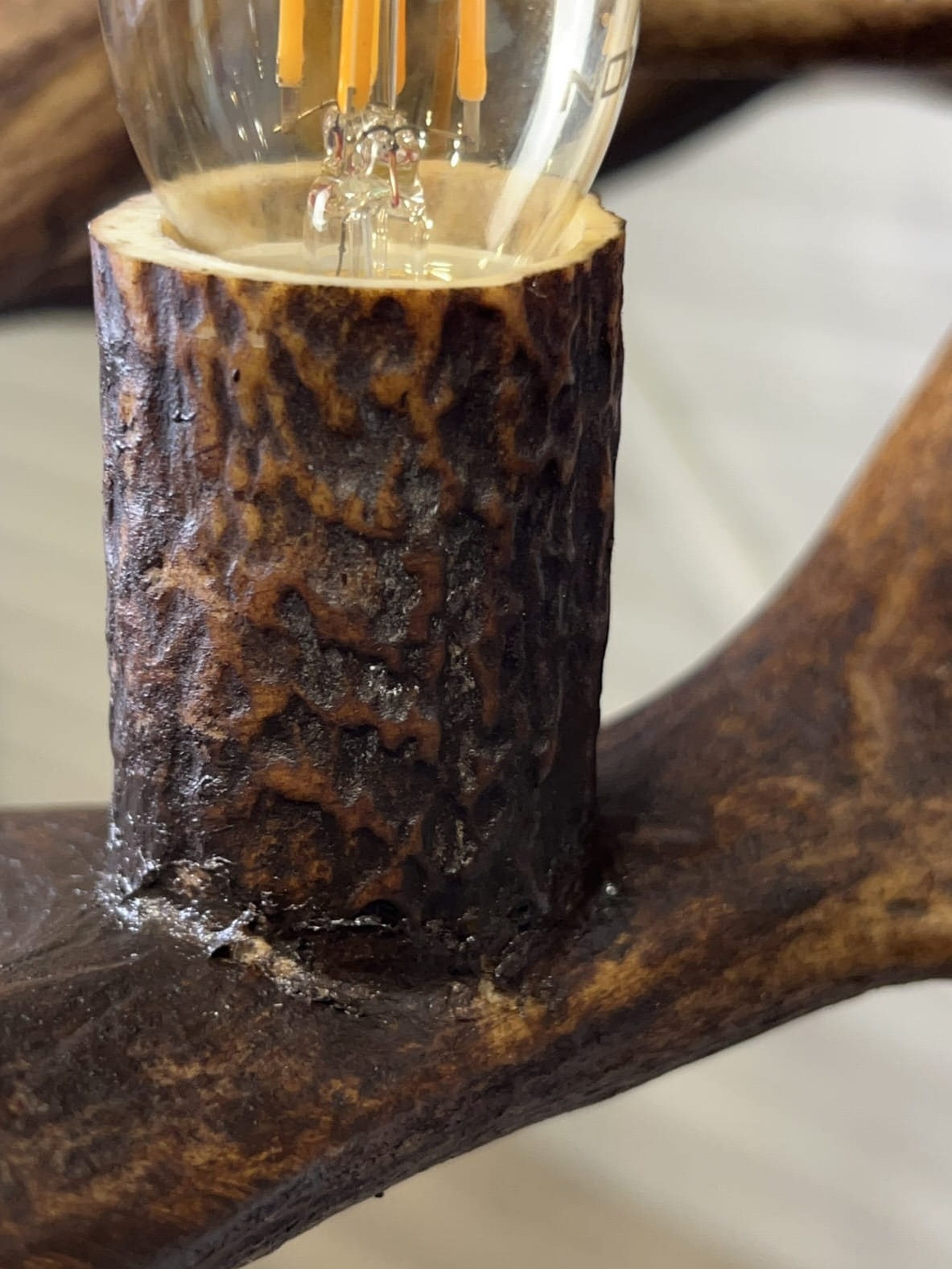 Dzięki wykorzystaniu prawdziwego poroża, każda lampa jest jedyna w swoim rodzaju – różni się kształtem, strukturą i układem poroża.